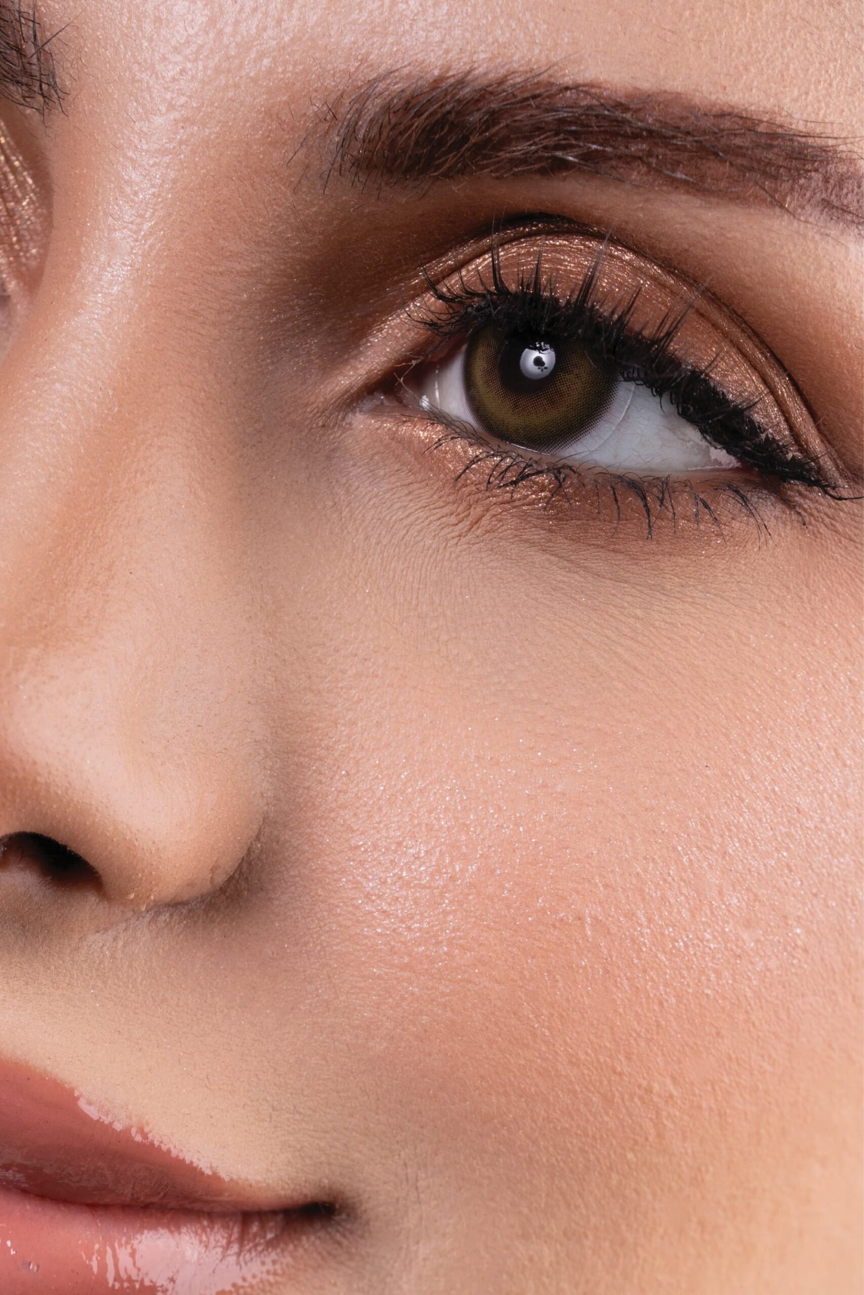 3-tone colored contact lenses featuring a soft moss green outer ring, blended seamlessly with warm golden hazel and light honey tones at the center – creating a naturally fresh, bright-eye effect. Perfect for anyone who loves subtle green tones that still feel soft, warm, and wearable